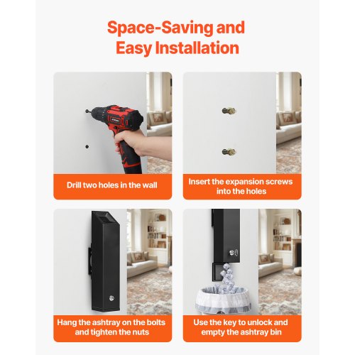 VEVOR Cigarette Butt Receptacle, Stainless Steel Cuboid Cigarette Butt Container, Wall Mounted and Weatherproof Outdoor Cigarette Butt Disposal for Garden, Office, Restaurant, Hotel, Bar, Black