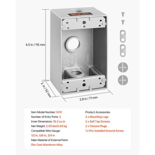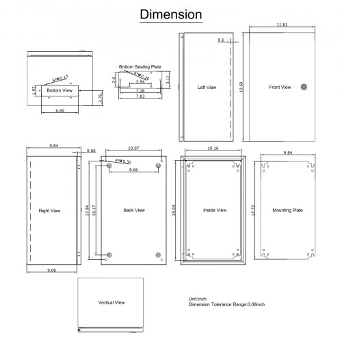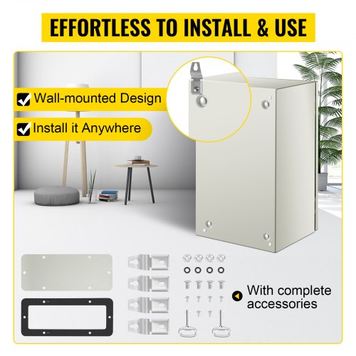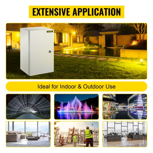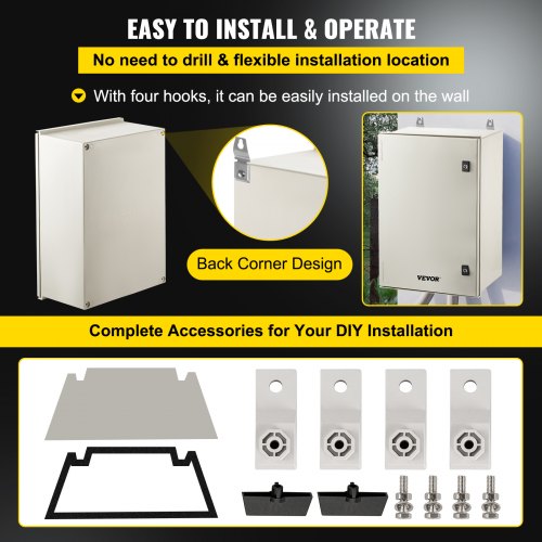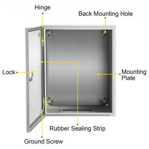 VEVOR Carbon Steel Electrical Box, 16x12x6 inches, Hinged Cover, IP66 Waterproof & Dust Resistant, Suitable for Outdoor Use, Includes Mounting Plate