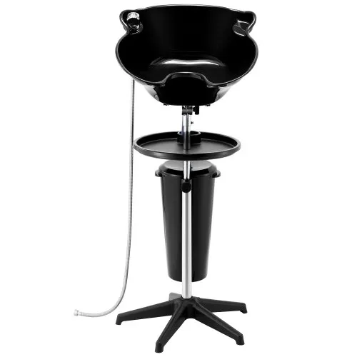 VEVOR Portable Shampoo Bowl, Deep Shampoo Sink for Washing Hair with Adjustable Height and Angle, Includes Drain Hose, Shower Head, Portable Wash Bowl for Barbershop Beauty Salon Spa Center, Black