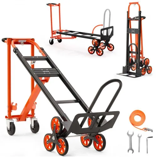 VEVOR 3 in 1 Industrial Convertible Stair Climbing Cart, 770 lbs Max Load, Folding Hand Truck Dolly with Handle & Wheels, Stair Climbing Utility Trolley for Transport & Moving, Orange & Silver