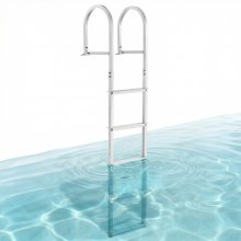 VEVOR Dock Ladder, Flip-Up 3 Steps, 350 lbs Load Capacity, Aluminum Alloy Pontoon Boat Ladder with 2'' Wide Step & Nonslip Rubber Mat, Easy to Install for Ship/Lake/Pool/Marine Boarding