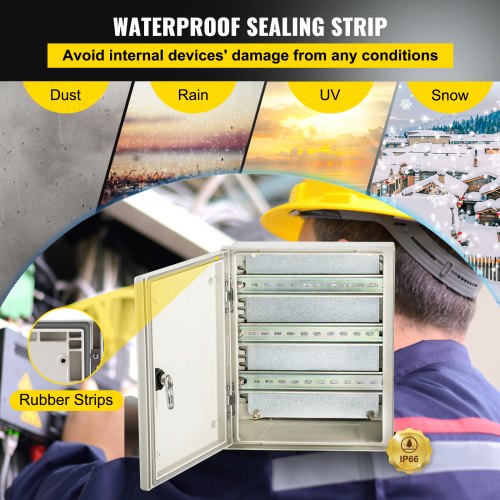 VEVOR NEMA Steel Enclosure, 24 x 16 x 10\'\' NEMA 4X Steel Electrical Box, IP66 Waterproof & Dustproof, Outdoor/Indoor Electrical Junction Box, with Mounting Plate
