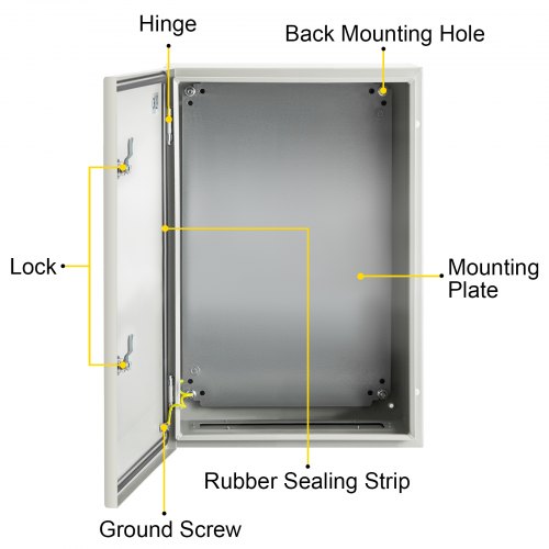 VEVOR NEMA Enclosure, 20 x 16 x 8 inches, NEMA 4X Fiberglass Steel Electrical Box, IP66 Waterproof & Dustproof Hinged Junction Box for Outdoor Indoor Use, with Mounting Plate(50x40x20 cm))