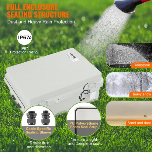 VEVOR Outdoor Electrical Junction Box, 13.78 x 9.84 x 5.90 in, ABS Plastic Electrical Enclosure Box with Hinged Cover Stainless Steel Latch, IP67 Dustproof Waterproof for Outdoor Electrical Projects