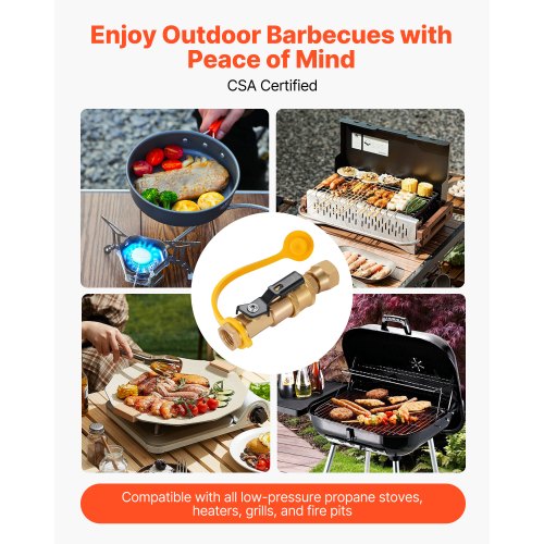 VEVOR RV Propane Quick Connect Y Splitter Adapter with Shutoff Valve, 2 Way 1/4 inch Quick Disconnect Kit, Fits for RV Trailer, Quick Connect Propane Hose Connect to Motorhome Tabletop Camping Grill