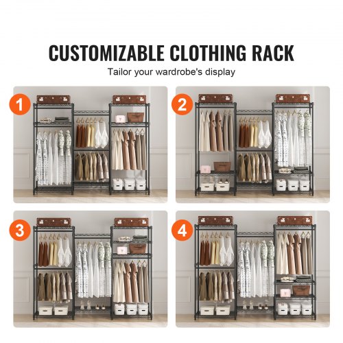 VEVOR Clothing Garment Rack, Heavy Duty Closet Wardrobe, Adjustable Tiers Clothes Racks with Steel Frame, 1100 lbs Load Capacity Clothes Rack with 4 Hanging Rods for Bedroom, Clothing Store, Hallway