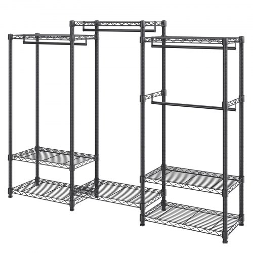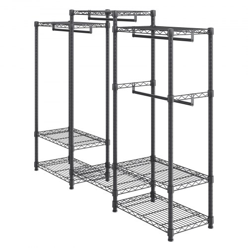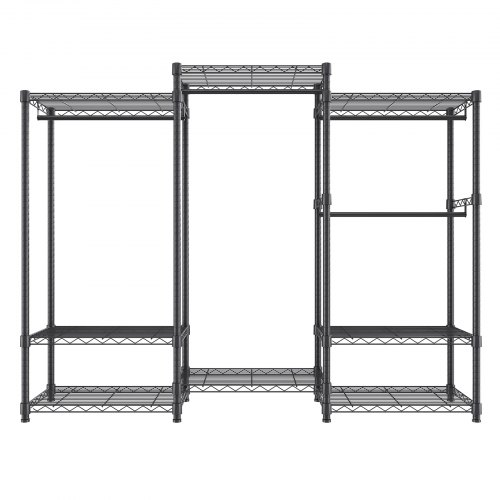 VEVOR Clothing Garment Rack, Heavy Duty Clothes Rack, 6 Adjustable Tiers Clothes Racks with Steel Frame, 800 lbs Load Capacity Closet Wardrobe with 3 Hanging Rods for Bedroom, Clothing Store, Hallway