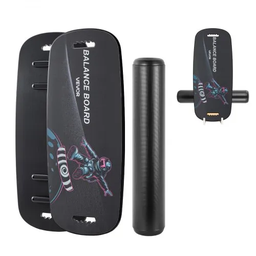VEVOR Balance Board, 3-Level Height Adjustable Wobble Board Trainer for Adults, Premium Wooden Balance Training Equipment, with Roller, Magnetic Stoppers, Storage Rack, for Core Workouts, Surf Trainer
