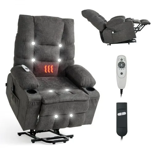 VEVOR Power Lift Recliner Chair, Lift Chair with Heat and Massage for Elderly, Dual Motor Recliner Chair with 2 Anti-Fall Ropes, Infinite Position Adjustment Electric Recliner (Medium, Dark Gray)