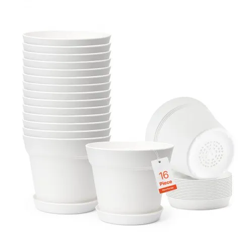VEVOR Plastic Plant Pots, 16 Packs 6 in Durable Planters, Lightweight Nursery Pots with Drainage Holes & Detachable Saucers, Round Tapered Flower Pot for Indoor & Outdoor Plants, Home Garden Decor