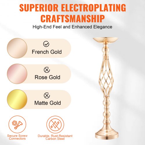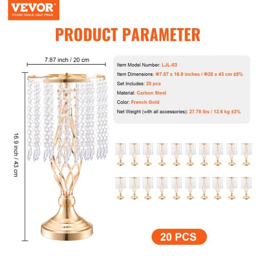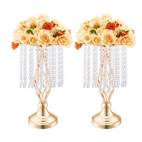 VEVOR 20PCS 43cm/16.9” Tall Crystal Wedding Flower Stand, Metal Wedding Centerpiece Vase, Gold Flower Holders Floral Display Rack for Tables Wedding Dinner Party, Ceremony Birthday Event Decor