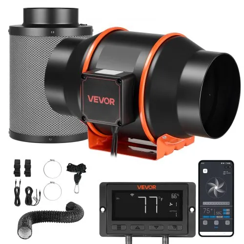 VEVOR 4" Air Filtration Kit, 180 CFM Inline Duct Fan with Speed Controller, Carbon Filter & Ducting Ventilation System for Heating Cooling Booster, Grow Tents, Hydroponics