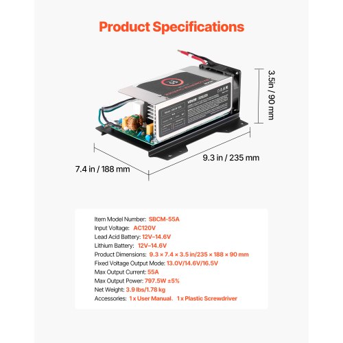 VEVOR WF-8955-AD-MBA RV Power Converter, 55 Amp, DC Main Board Assembly Replacement Unit, Multi-Stage Smart Charge for Lithium Lead Acid Battery, for WF-8955, WF-8955-AD, and Parallax 7145 7155 Series