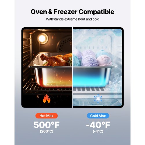VEVOR 4 Pack Stainless Steam Hotel Pan, 1/2 Size Table Steam Pan, 2.5 Inch Deep Anti Jam Restaurant Supplies Reusable Rustproof Catering Storage for Home, Party, Restaurant, Hotel, Buffet