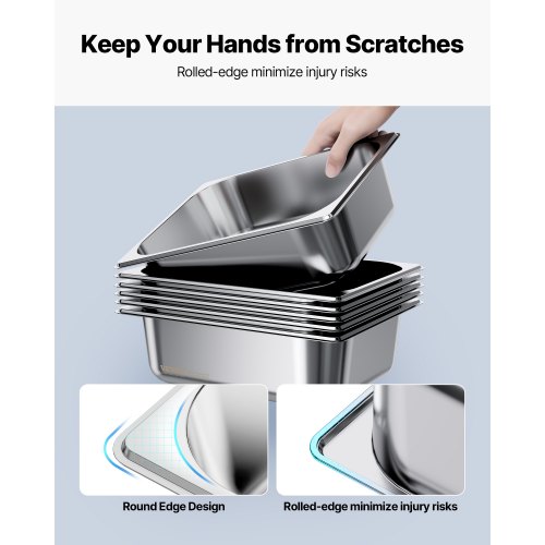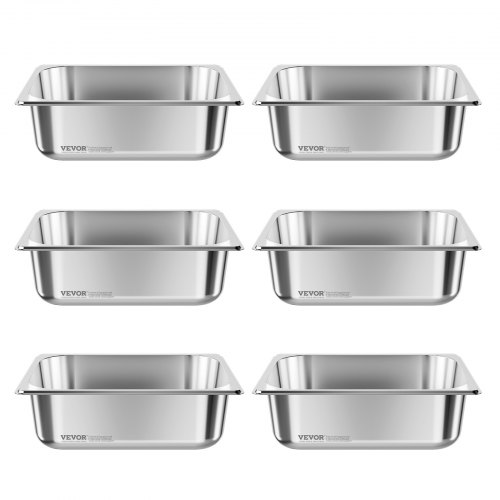 VEVOR 6 Pack Stainless Steam Hotel Pans, 1/6 Size Table Steam Pan, 4 Inch Deep, Anti Jam Restaurant Supplies Reusable Rustproof Catering Storage for Home, Party, Restaurant, Hotel, Buffet