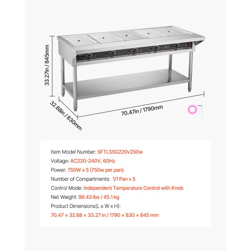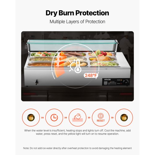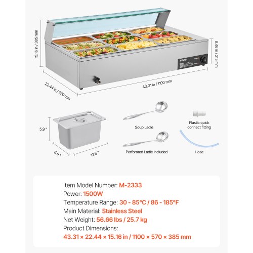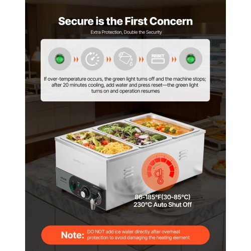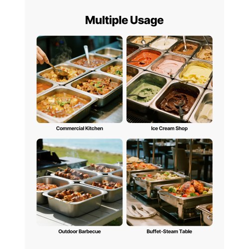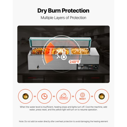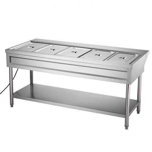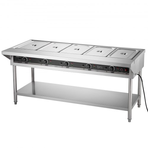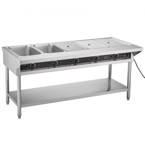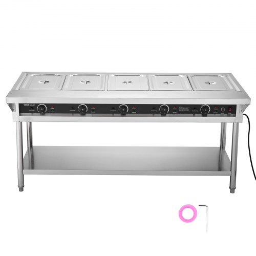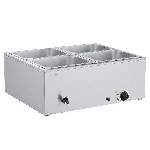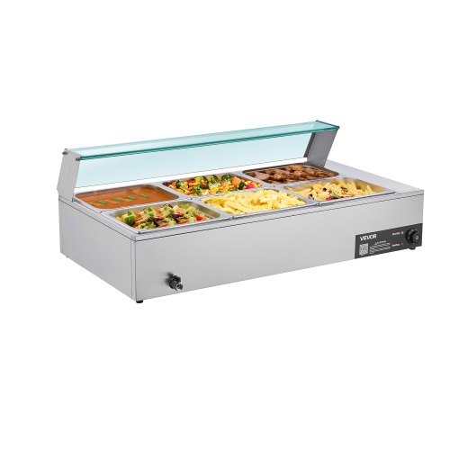 VEVOR Commercial Food Warmer, 1200W Electric Stainless Steel Steam Food Warmer, Fast Heating Countertop Buffet Bain Marie with Detachable Power Cord, for Catering, Restaurants, Parties & Buffets