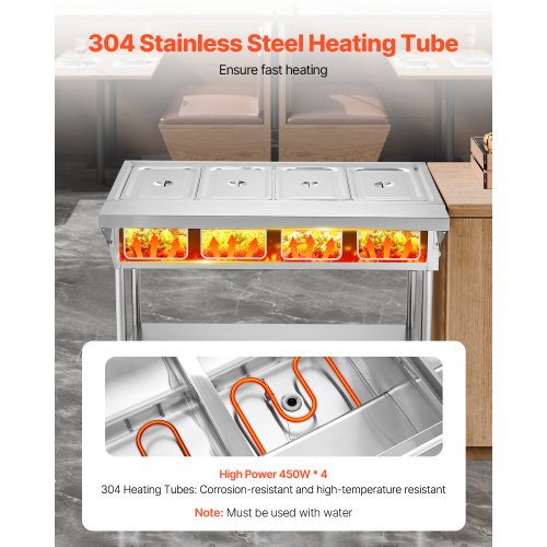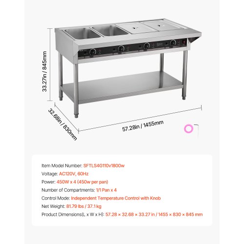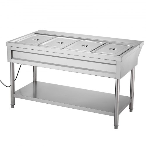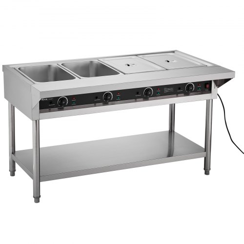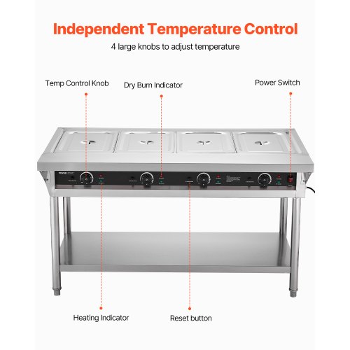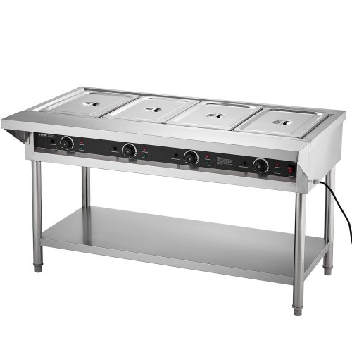 VEVOR 4-Pan Commercial Food Warmer, Electric Steam Table with Independent Temperature Control, 450W x 4 Stainless Steel Buffet Catering Food Warmer with Undershelf and Workspace, for Restaurant