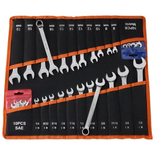 VEVOR Combination Wrench Set, 44-Piece SAE and Metric, 12-Point Box End and 15° Angled Open End Combination Wrenches with Roll Up Pouch, Carbon Steel, for General Household and Automotive Repairs