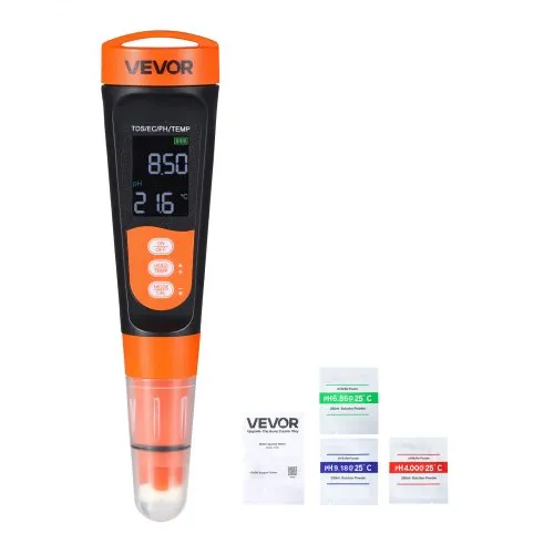 VEVOR pH Meter, Accurate pH/EC (Conductivity)/TDS (ppm) Multi-Parameter Measurement, IP68 Waterproof Probe, Pocket Tester Kit with Calibration Powder Packets, VA Display, for Water Quality Testing