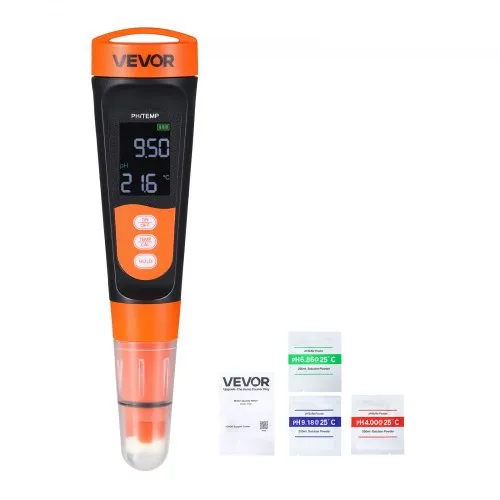 VEVOR pH Meter, 0-14 pH Range, IP68 Waterproof Probe, Pocket Tester Kit with Calibration Powder Packets, VA Display Screen, for Drinking Water, Hydroponics, and Aquarium Water Quality Testing