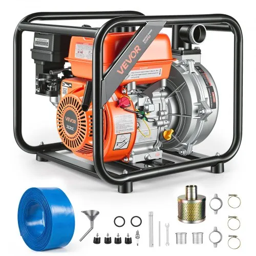 VEVOR Gas Powered Water Pump, 2 in, 128 GPM 6HP Semi Trash Water Transfer Pump Portable, Gasoline Engine with 25 ft Discharge Hose, Heavy Duty Frame, Cast Iron Impeller, for Irrigation, Ponds, Pools