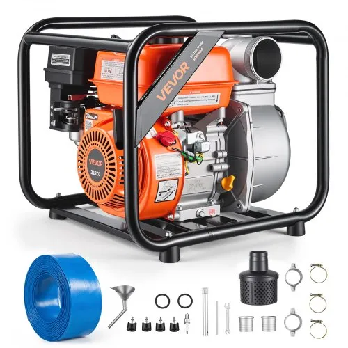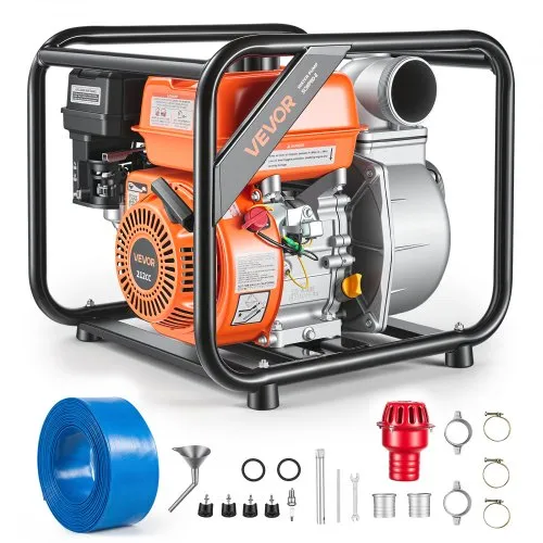 VEVOR Gas Powered Water Pump, 3 in, 242 GPM 7HP Semi Trash Water Transfer Pump Portable, Gasoline Engine with 25 ft Discharge Hose, Heavy Duty Frame, Cast Iron Impeller, for Irrigation, Ponds, Pools