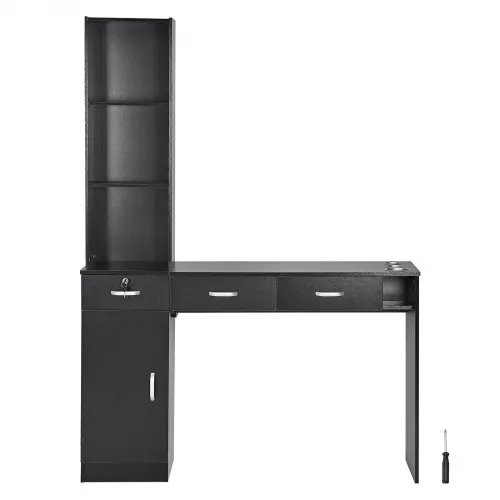 VEVOR Salon Workstation, Wall-Mounted Unit for Hair Professionals, Spa Styling Storage Solution, Includes 1 Cabinet, 3 Shelves & 3 Drawers (1 with Lock), in Sleek Black
