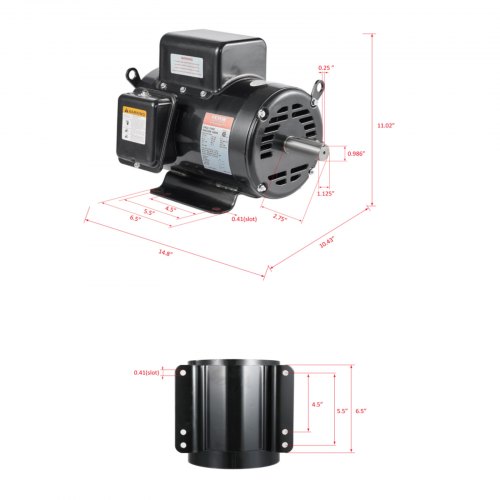 VEVOR 7.5HP Air Compressor Motor, 230V 31.6 Amps Electric Motor, 3450RPM 184T Frame, 1-1/8" Keyed Shaft, 2.75" Shaft Length for Air Compressors, Single Phase, CCW/CCW (Factory Setting is CCW)