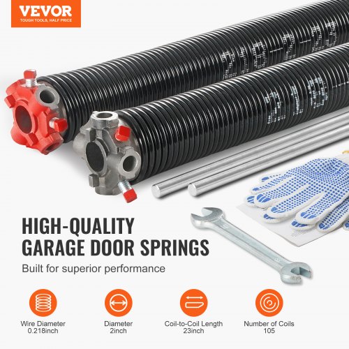 VEVOR Garage Door Torsion Springs, Pair of 0.218 x 2 x 23inch, Garage Door Springs with Non-Slip Winding Bars, 16000 Cycles, Gloves and Mounting Wrench, Electrophoresis Coated for Replacement
