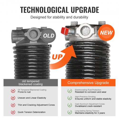 VEVOR Garage Door Torsion Springs, Pair of 0.250 x 2 x 35 in, 16000 Cycles, Electrophoresis Black Coated for Replacement, Garage Door Springs with Non-Slip Winding Bars, Gloves and Mounting Wrench