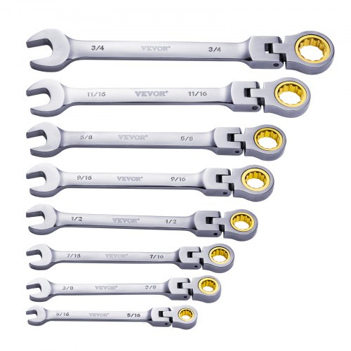 VEVOR Flex-Head Ratcheting Wrench Set, 8-piece Combination Wrench Set with Roll-up Pouch, Cr-V Steel Flexible Ratcheting Wrench Set SAE 5/16" to 3/4", Ideal for General Household, Workshop, Garage
