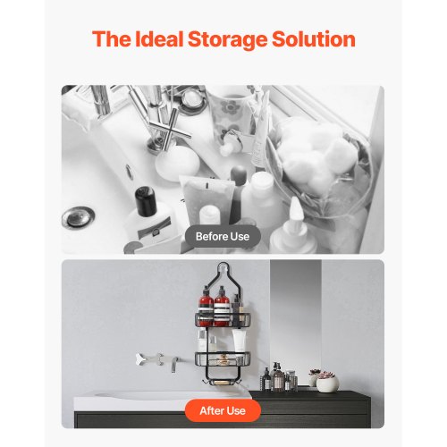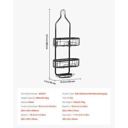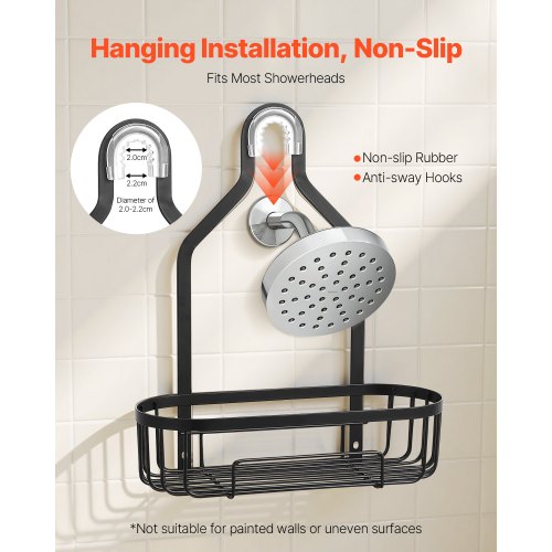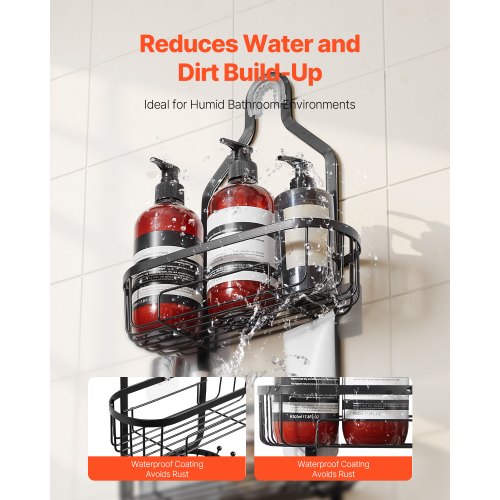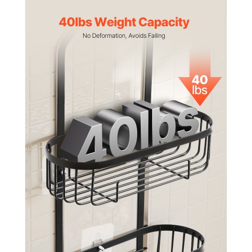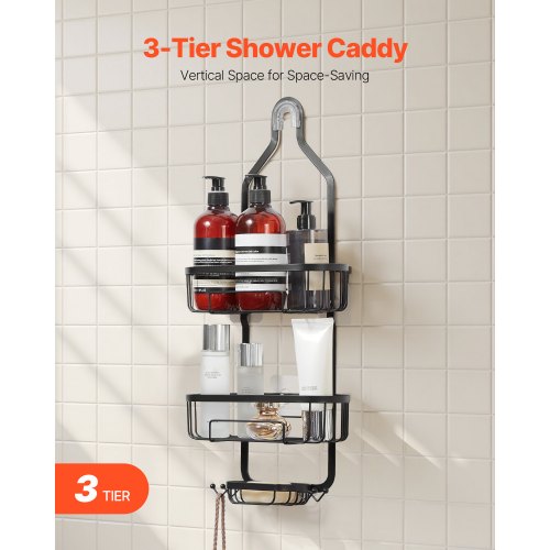 VEVOR Shower Caddy, 3-Tier Hanging Bathroom Shower Storage Organization Shelves Rack Set, with Soap Holder and Hooks for Towels, Sponge, 40 lbs Large Weight Capacity, Fits Shower Head, Matte Black