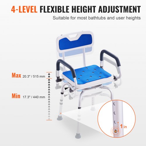 VEVOR Swivel Shower Chair 360 Degree, Adjustable Shower Seat with Pivoting Arms for Inside Showers or Tubs, Non-Slip Rotating Bathtub Shower Chair for Elderly Disabled Injured, 400LBS Capacity