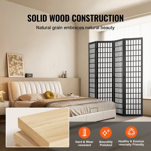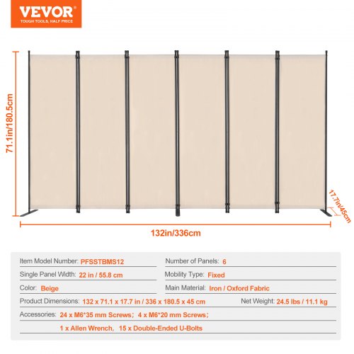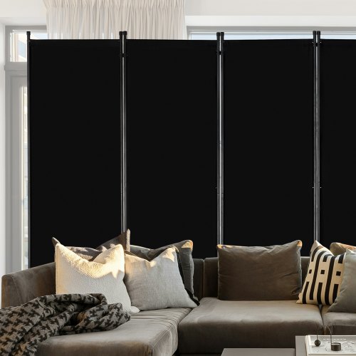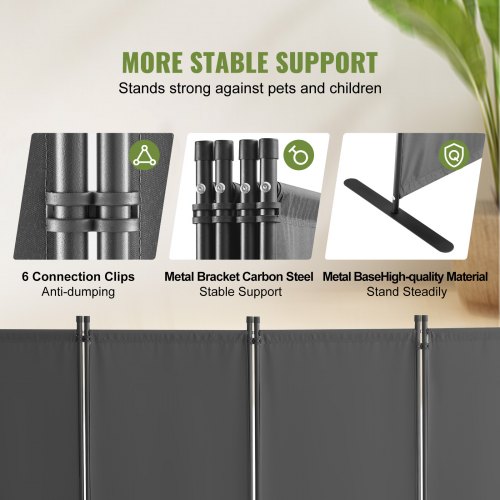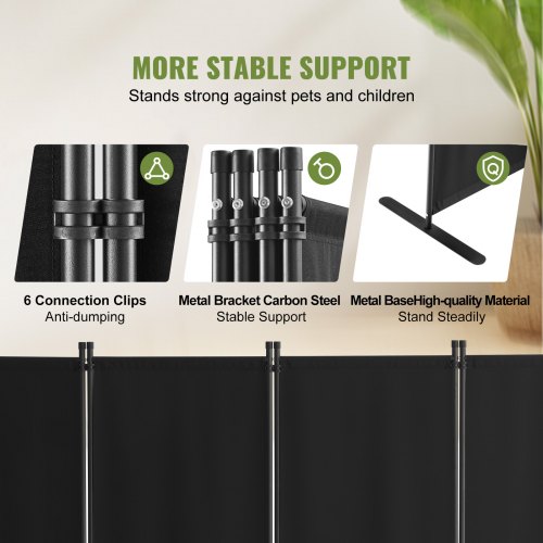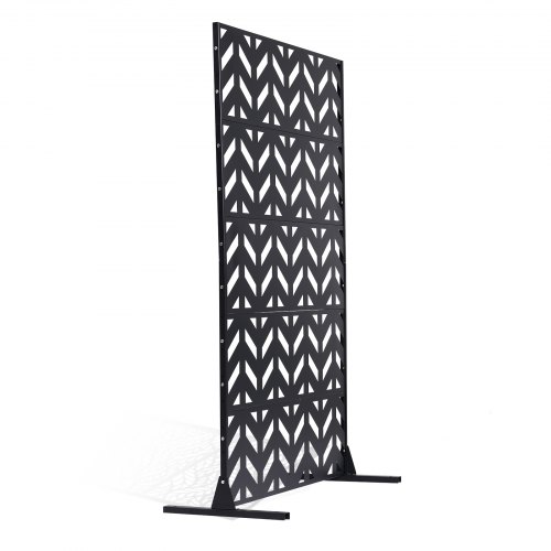 VEVOR Metal Privacy Screen, 47" W x 72" H, Outdoor Privacy Screens 5-Panel, Freestanding Outdoor Divider with Stand, Decorative Garden Steel Privacy Fence for Balcony Patio Indoor Room Black