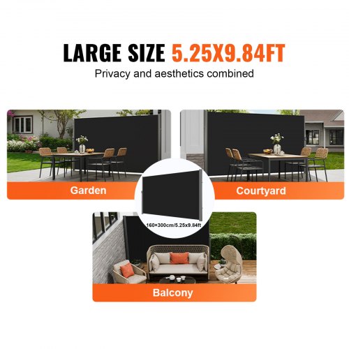 VEVOR Retractable Side Awning, 71''x 118'' Aluminum Outdoor Privacy Screen, 280g Polyester Water-proof Retractable Patio Screen, UV 30+ Room Divider Wind Screen for Patio, Backyard, Balcony, Black