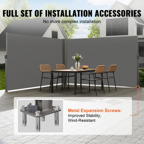 VEVOR Retractable Side Awning, 63''x 118'' Full Aluminum Rust-Proof Outdoor Privacy Screen, Folding Room Divider Wind Screen for Patio Sun Shade, Backyard, Balcony, Roof Terraces and Pools, Gray