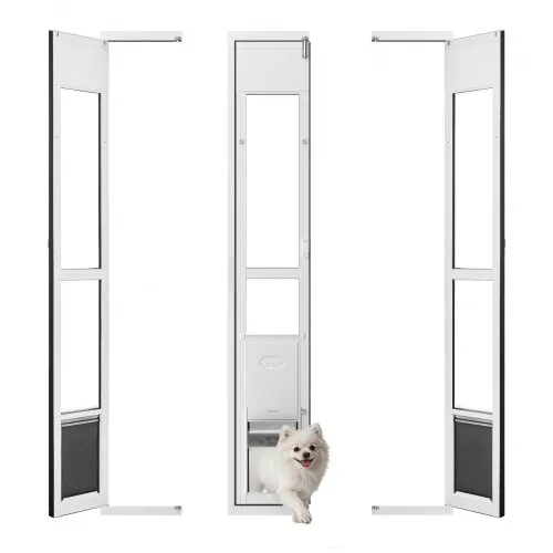 VEVOR Dog Door for Sliding Glass Door, 75 7/8" to 80 11/16" Adjustable Height, Aluminum Alloy Frame with Flap and Lock, for Extra Large-Sized Dogs, 180° Swing-Open Sliding Glass Pet Doors for Renters