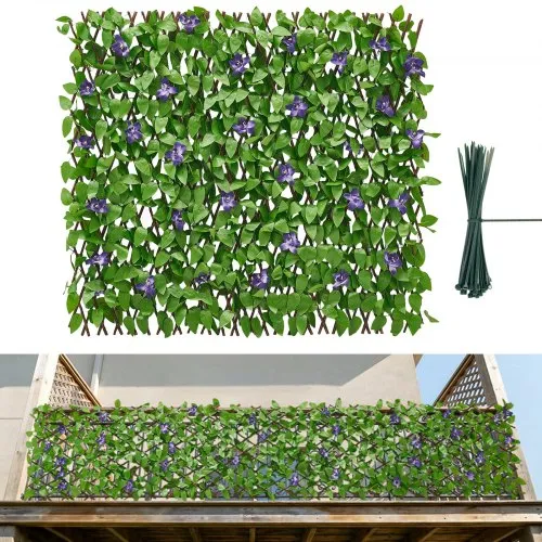 VEVOR Expandable Fence Privacy Screen, 25.5 x 122 in Expand Artificial Plant Wall, Realistic Artificial Ivy Panel with 50 Zip Ties, Decorative Faux Greenery Backdrop Hedges for Balcony Patio Outdoor