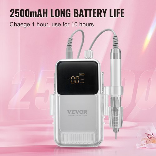 VEVOR Electric Rechargeable Nail Drill, 35,000RPM Portable Cordless Nail E File Machine, LCD-Display Acrylic Gel Grinder Tool with 6 Bits and 50PCS Sanding Bands for Manicure Pedicure Carve Polish
