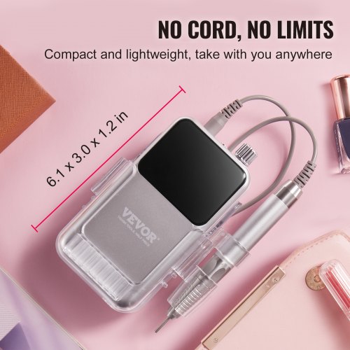 VEVOR Electric Cordless Nail Drill - with High-Torque 35000RRM Brushless Motor, Rechargeable Nail E File Machine with 6 Bits & 50PCS Sanding Band for Acrylic Gel Nails, Portable Manicure Pedicure Tool