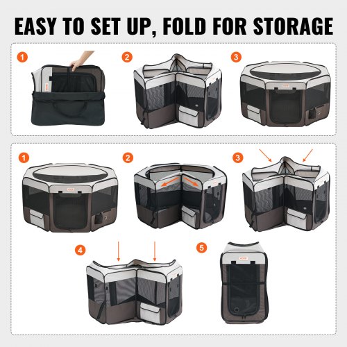 VEVOR Foldable Pet Playpen, 36 inch Portable Dog Playpen, Crate Kennel for Puppy, Dog, Cat, Premium Waterproof 600D Oxford Cloth, Removable Zipper, for Indoor Outdoor Travel Camping Use (Octagon, M)