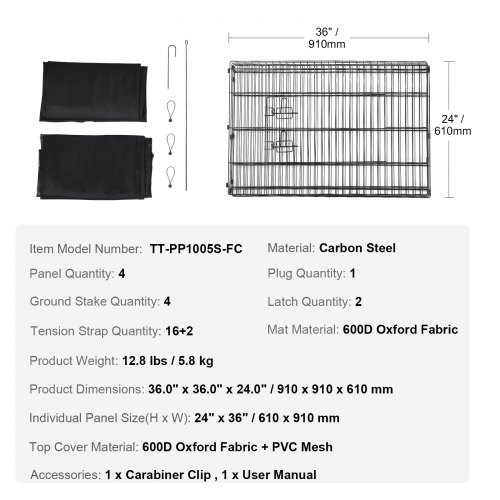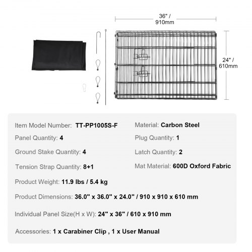 VEVOR Dog Playpen, 8 Pcs 24 x 24 in Panels Foldable Metal Pet Exercise Pen, Dog Fence Indoor and Outdoor Pen with Door, Storage Bag and Bottom Pad, Pet Playpen for Dogs, Cats and Other Small Animals