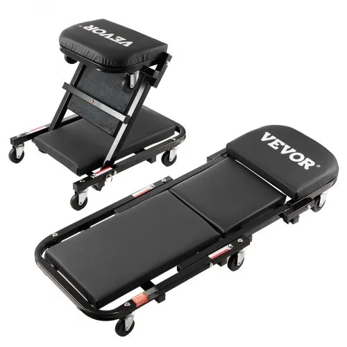 VEVOR Z-Creeper Seat, 2 in 1 Rolling Folding Car Creeper/Stool, 300 lbs Capacity Mechanic Creeper, Low Profile Creeper with 6 pcs Wheels for Garage, Shop, Auto Repair, Lay Down or Sit, Black