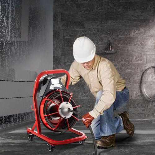 VEVOR Electric Drain Auger 50FTx1/2Inch,250W Drain Cleaner Machine,Sewer Snake Machine,Fit 2\'\'- 4\'\'/51mm-102mm Pipes, with 4 Wheels, Cutters,Foot Switch, for Drain Cleaners Plumbers