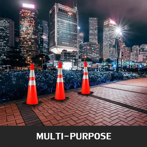 VEVOR 6Pack 36\" Traffic Cones, Safety Road Parking Cone with Black Weighted Base, PVC Orange Traffic Safety Cones, Hazard Cones Reflective Collars for Construction Traffic Parking