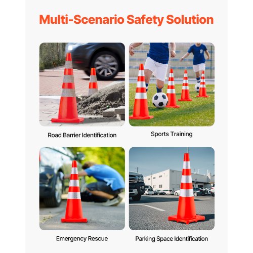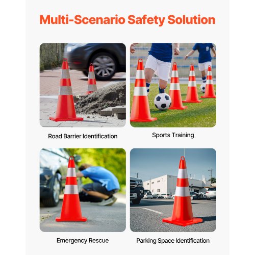 VEVOR 20Pack 18\" Traffic Cones, Safety Road Parking Cones PVC Base, Orange Traffic Cone with Reflective Collars, Hazard Construction Cones for Home Traffic Parking