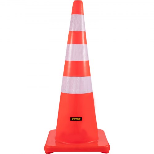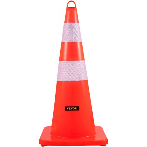 VEVOR Safety Cones, 12 x 28\" Traffic Cones, PVC Orange Construction Cones, 2 Reflective Collars Traffic Cones with Weighted Base and Hand-Held Ring Used for Traffic Control, Driveway Road Parking