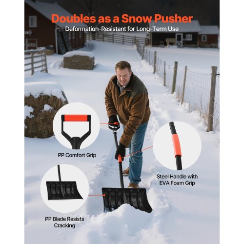 VEVOR Snow Shovel for Driveway, 17 in Wide Plastic Snow Shovel with D-shaped Handles & Aluminum Blade, Large Capacity Snowplow Shovels, Lightweight Snows Removal Tool for Garden Car Camping