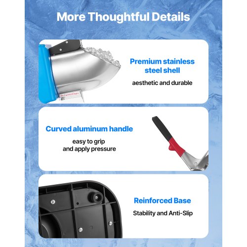 VEVOR Snow Shovel for Driveway, 8.5 in Wide Aluminum Alloy Snow Shovel with T-shaped Handles, Large Capacity Snowplow Shovels, Portable & Lightweight Snows Removal Tool for Garden Car Camping