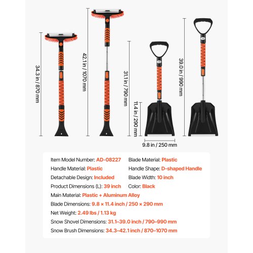 VEVOR Snow Shovel and Snow Brush, 42 in Extendable Snows Broom & Ice Scraper with 180° Pivoting Brush Head, Non-Slip Grip, Portable Winter Snows Removal Tools for Cars Trucks SUVs Vehicle